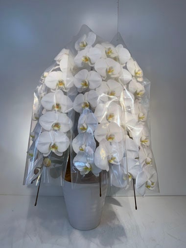 更に、回収サービス付きなので、後の手入れも安心。使用後の処理に困ることもなく、サステナブルな選択ができるのも嬉しいポイントです。最高の品質を追求した「胡蝶蘭白32本立」をぜひお試しください。